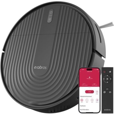 Aspirateur Robot Poils d'Animaux Erabros RS1-Autonomie 140 Minutes-3000Pa-600ml Bac à Poussière -Ultra-Mince Silencieux