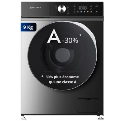 GEDTECH Lave-linge frontal GLLPS91400DG - 9 Kg - 1400 tr/mn - 16 prog - Eco - Intensif - Rapide – Très Faible conso - LED couleur