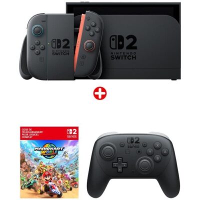 Pack Nintendo : Console Nintendo Switch 2 + Mario Kart World (Code) + Manette Switch Pro 2