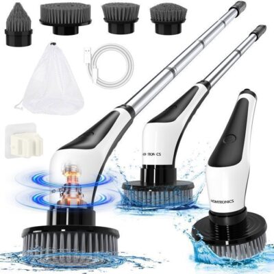 Brosse Electrique Nettoyage, [IPX8 Imperméable] Homtronics Brosse Menage Electrique, Brosse Nettoyage Salle de Bain, pour Plancher