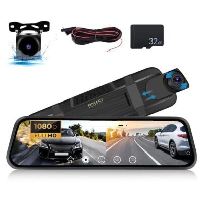 FOSMET 10" Caméra de Voiture Écran Tactile avec TF Carte 32G, 1080P HD Dashcam, Système de Stationnement, Grand Angle 170° Capteur