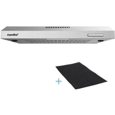 Hotte Aspirante Casquette Visière- 60cm Comfee - 3 Vitesses - Évacuation & Recyclage - LED Lampe - Filtre En Coton Argent - En Inox