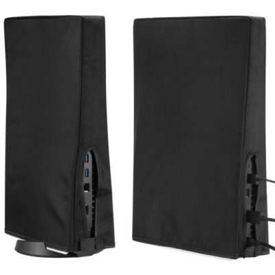 Housse console jeu PS5 tissu Oxford noir, protection poussière verticale 15.4x10.2x3.5 pouces salon