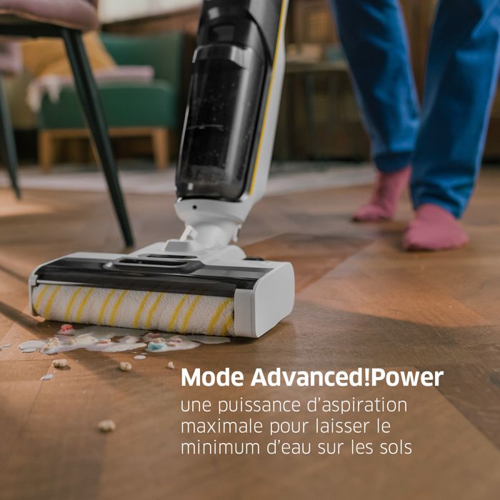 Économisez jusqu’à 50% de temps de nettoyage* et garantissez une propreté parfaite ! Grâce à la fonction d’aspiration intégrée sans pré-aspiration. 4 modes de nettoyage pour chaque type de saleté – même les saletés les plus tenaces et les grandes quantités de liquide ne posent aucun problème. Adaptation optimale aux différents sols et nettoyage sans couture jusqu’au bord, même sur les tapis et moquettes en mode sec.