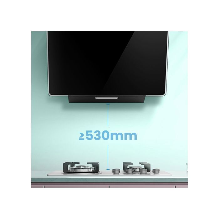 La hauteur d’installation ne peut pas être inférieure à 530 mm, pour garder votre utilisation en toute sécurité et également maintenir une efficacité optimale de désenfumage. La cheminée réglable s’adapter à la cuisine.