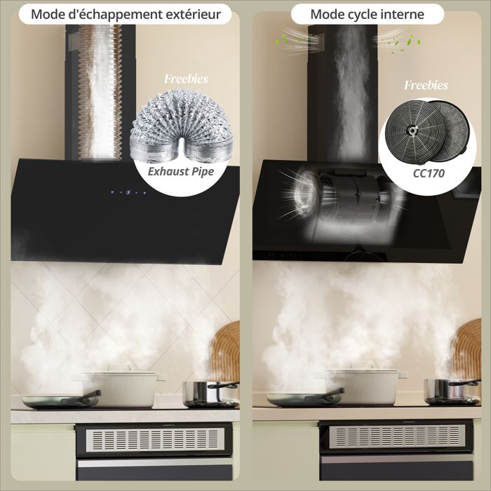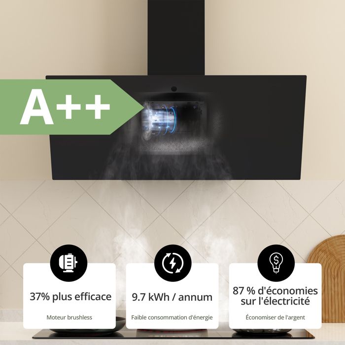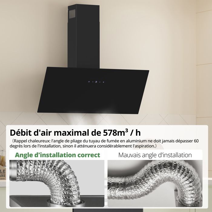 | Nom du produit | FIREGAS Hottes Aspirantes 90cm, Hotte de Cuisine Inclinée, 578m³/h Puissance d’aspiration élevée, Evacuation ou Recyclage,A++ |
