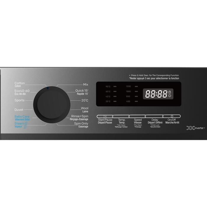 Pour les petites mains un peu trop curieuses, votre lave-linge dispose d’une sécurité enfant qui bloque les commandes pour empêcher toute modification des programmes.