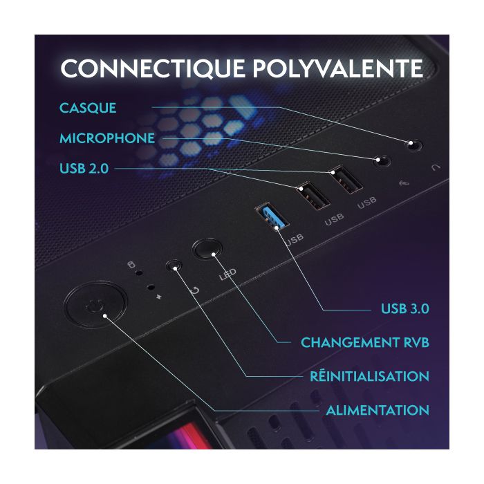 Plongez dans l’action avec ce PC gaming d’entrée de gamme – conçu pour un gameplay fluide, des performances rapides et un excellent rapport qualité-prix. Parfait pour des jeux comme Fortnite, Valorant, Minecraft et bien d’autres.
