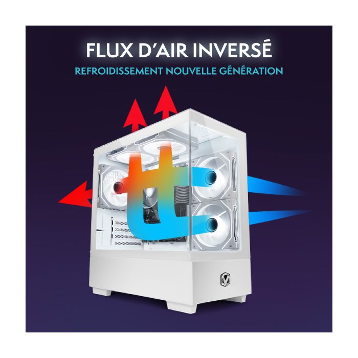 | Caractéristiques | Panneau avant à effet miroir infini | Flux d’air exceptionnel | Conception compacte en verre | Superbe RGB, vue complète des composants |